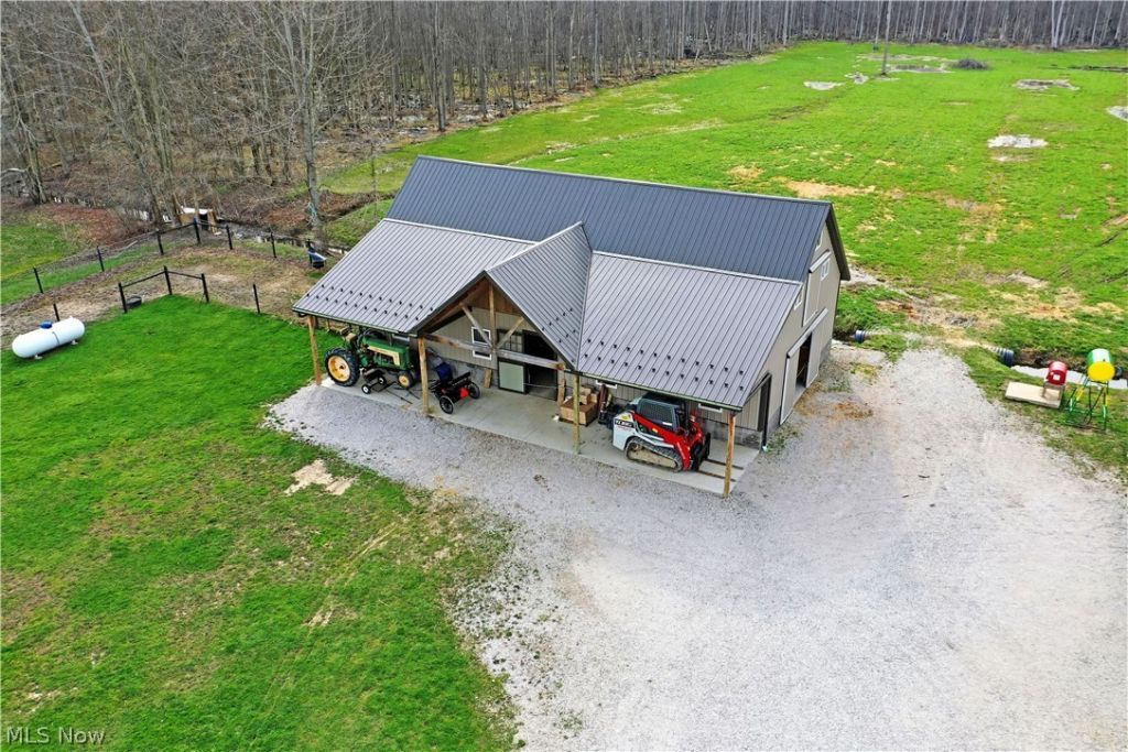 Could this quality built 3 BR 2 Bath Cape Cod working farm work for you & your family &/or business? Cozy up inside with beautiful hardwood floors, solid wood interior doors, its wired for electric and ready for you & your memories! The stylish kitchen has solid wood cabinetry & is accented with a gorgeous copper farmhouse sink & coordinated granite countertops that is sure to impress. The French doors in the kitchen open to a deck for ease of entertainment & the large island provides extra counter space & seating. In the bathrooms have the same quality cabinetry, granite countertops with coordinating copper sinks & quality slate style vinyl flooring. The 3 carpeted bedrooms are spacious with the 1st floor one being a playroom currently. Choose from an electric forced air heat furnace or wood burning stove heat in the living room. The basement is an open slate for your storage or entertaining needs. Range, refrigerator, & hot water tank purchased new in 2022 run on propane. The air-powered well pump was also newly installed in 2022. The 30'x29' barn was built in 2022 & features concrete floors, 4 box stalls, 4 tie stalls, water hydrant, hayloft. The LED lighting in the barn is wired together & run off of a rechargeable battery. The spectacular 49'x35' workshop was built in 2022 & features concrete floors with radiant heat, full kitchen with durable metal cabinetry, full bathroom & a 23'x16' loft. There is an impressive mechanical room with inverters for the 4 solar panels on the roof, wood burner & fire suppression tank. All the lights in the workshop run off of solar power. The large open area of the building has 18' cathedral ceilings. Use your imagination on ways to use this area to fit your needs. Enjoy looking out your front, side or back windows to see your horses out to pasture. On the other side of the creek behind the barn is a non-fenced pasture for gardening, additional horse pasture or whatever you desire. Approximately 50% of the property is wooded.